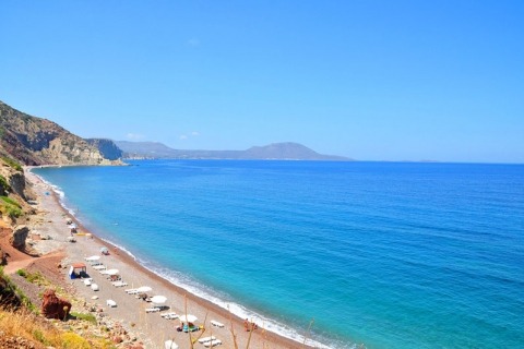 Μία από τις δύο ομώνυμες παραλίες του νησιού, βρίσκεται στα νοτιοανατολικά, πολύ κοντά στο χωριό του Καλάμου. Η μεγάλη σε έκταση παραλία οφείλει το όνομά της στο χαρακτηριστικό κόκκινο χρώμα, που προκύπτει από τον συνδυασμό κόκκινου βότσαλου και άμμου. Αν και πολυσύχναστη, απέχει αρκετά από τα περισσότερα χωριά του νησιού, ενώ θα χρειαστεί να διασχίσετε και ένα κομμάτι χωματόδρομου.
